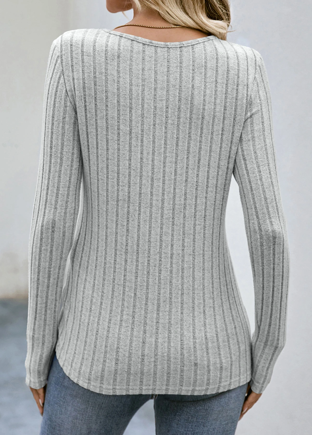 Grey Button Long Sleeve Round Neck T Shirt