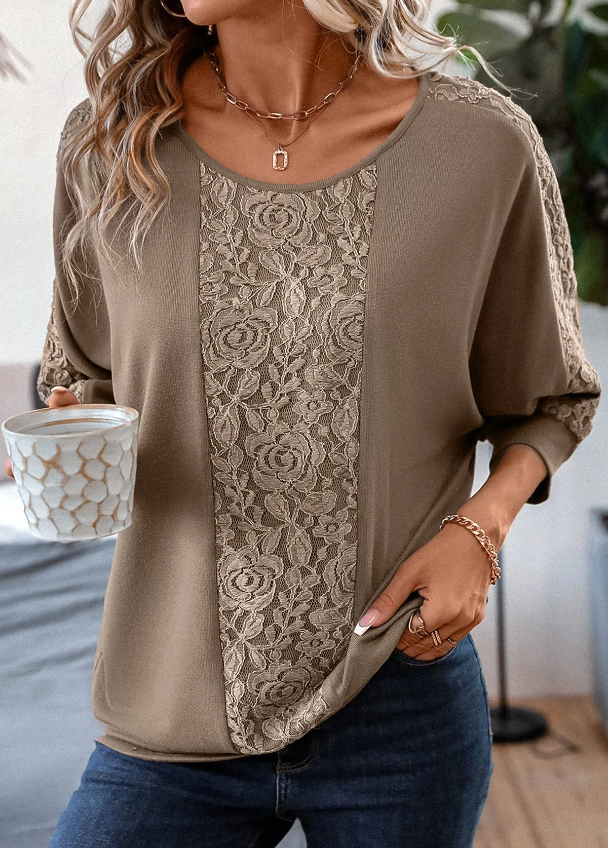 Be the first to review “Lace Light Coffee Patchwork T Shirt” Cancel reply