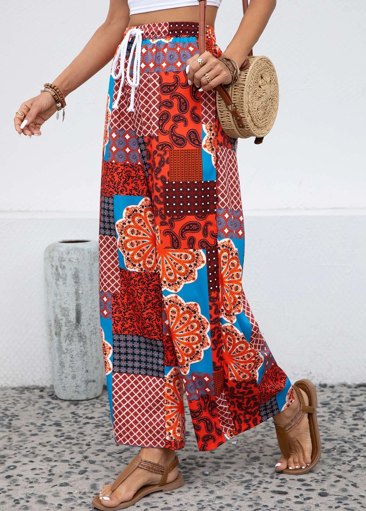 Multi Color Drawstring Tribal Print Drawastring Pants