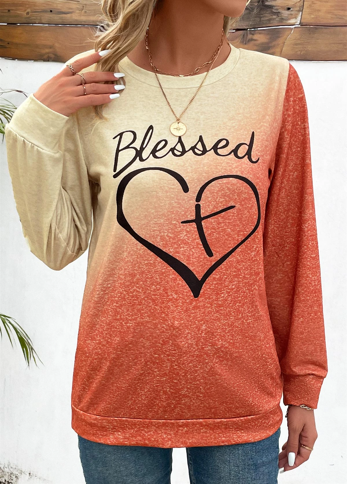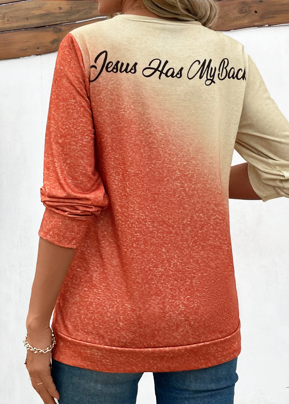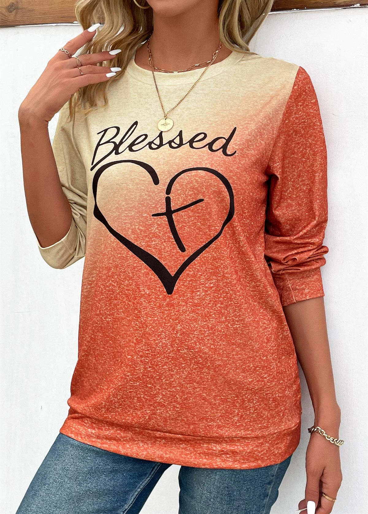 Orange Ombre Long Sleeve Round Neck T Shirt
