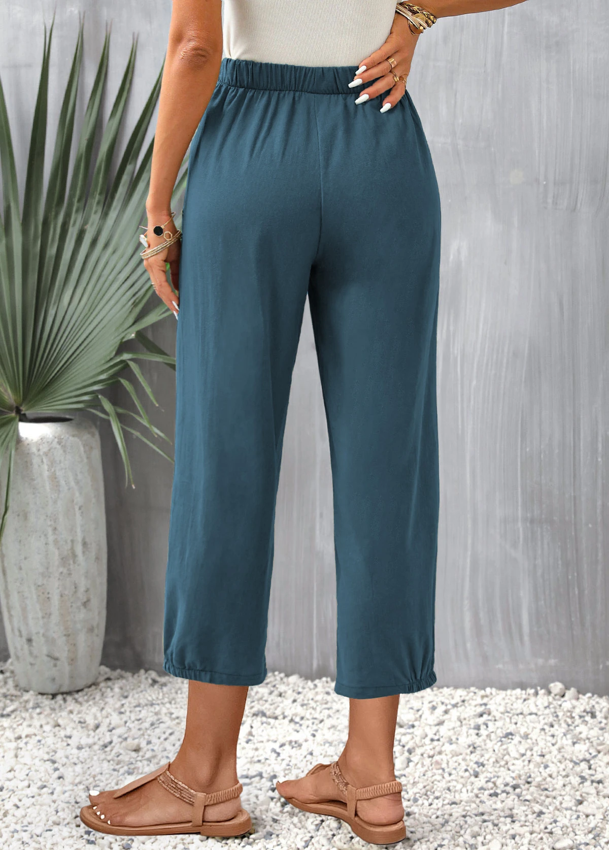 Be the first to review “Peacock Blue Pocket Elastic Waist Pants” Cancel reply