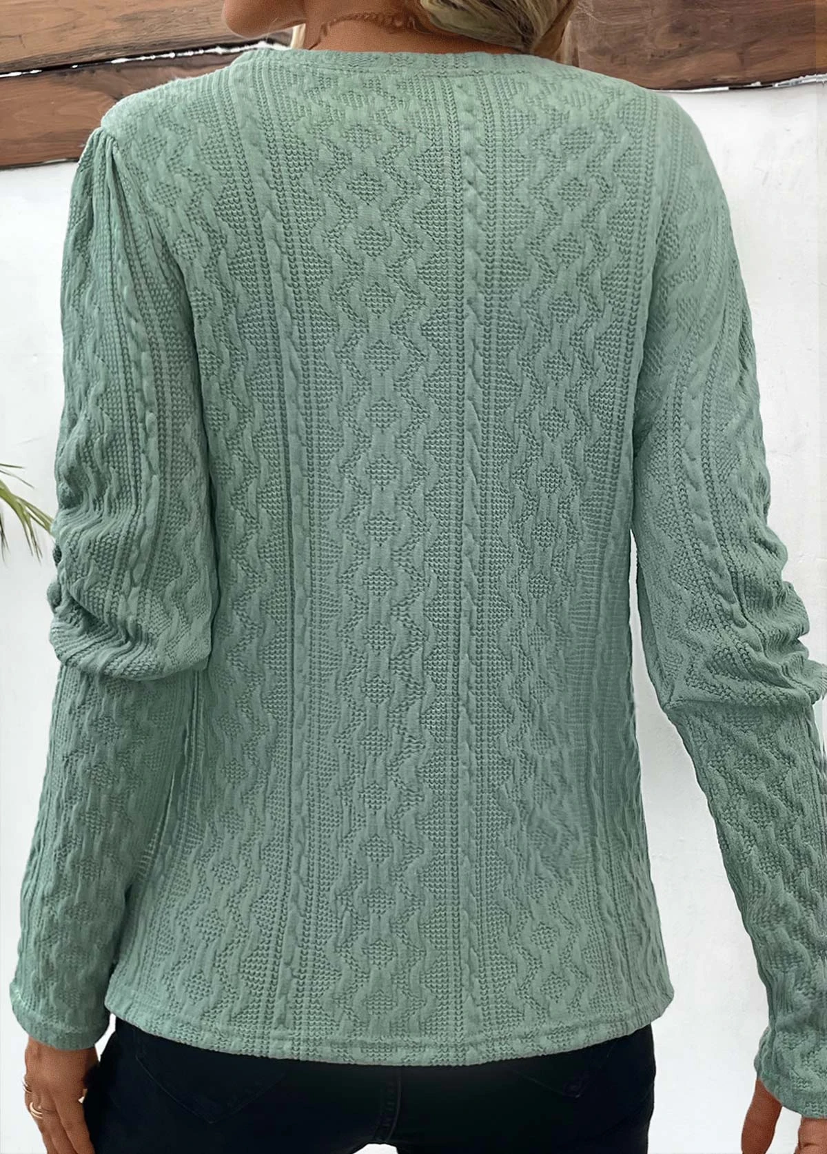 Be the first to review “Sage Green Ruched Long Sleeve Round Neck T Shirt” Cancel reply