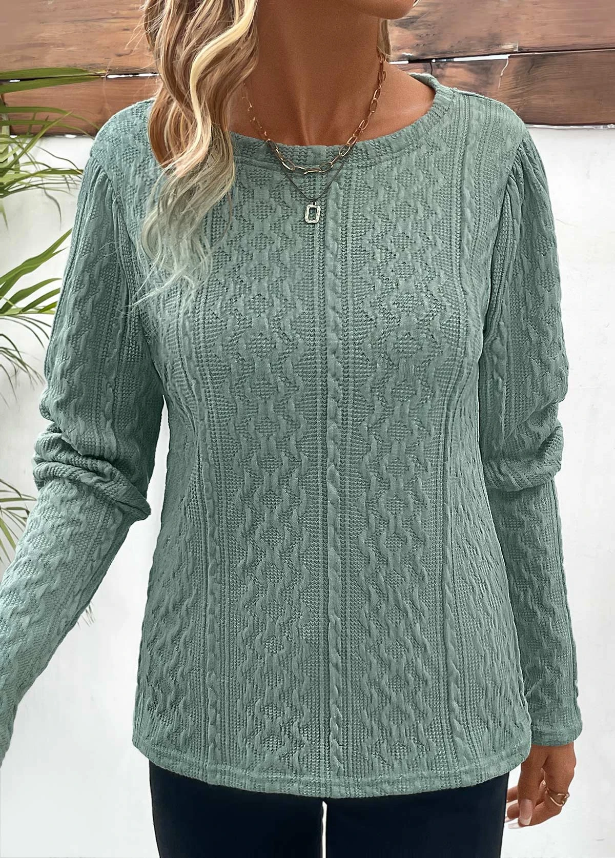 Sage Green Ruched Long Sleeve Round Neck T Shirt